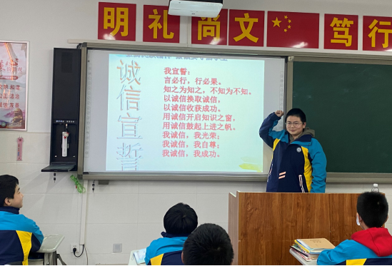 学校通过国旗下讲诚信、召开诚信主题班会、诚信宣誓、诚信演讲、诚信小故事会等形式对学生进行诚信教育,让“诚信之花”开满校园。通过开展“诚信教育进校园”活动,学生生长在明礼诚信的环境中,潜移默化中会成长为一个明礼诚信的好少年。
