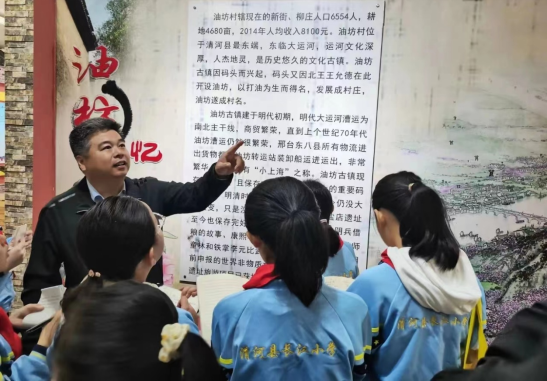 他们带领学生走进京杭运河和油坊码头遗址,让学生实地了解世界上最大的人工运河前世今生,考察古运河文化遗存,让学生在家乡的历史遗迹、风俗习惯、方言俚语里收集资料、编排整理、展示交流、探究评价,挖掘家乡文化里的家国情怀,亲切触摸家乡历史,学习家乡历史的优良传统和厚重文化,激发学生强烈的民族自豪感和自信心。