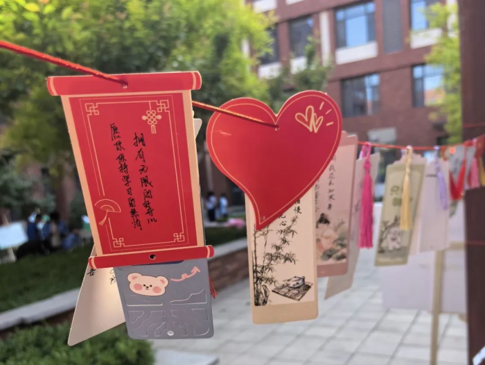 此摊位承载着师生对未来的美好期望,也展示出该校师生对生活的热爱和积极向上的态度。