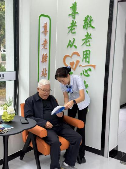 尊老驿站从老年客户生理特点与使用习惯出发,从细节处着手,打造安全、舒适的服务空间。一是打造温馨舒适区。设置专属休息等候区,配备柔软沙发、老花镜、放大镜、饮水机及常用急救药品,营造家一般的温馨氛围。二是保障安全无障碍。网点入口实现无障碍通道全覆盖,关键区域增设防滑措施和安全扶手,确保老年客户行动安全无忧。三是优化清晰指引。使用大字号、高对比度的标识牌和业务流程图,方便老年客户轻松识别和办理业务。四是开设爱心窗口。为老年客户开通“绿色通道”,减少排队等待时间,用便捷高效的服务,传递对老年客户的特殊尊重与暖心关怀。