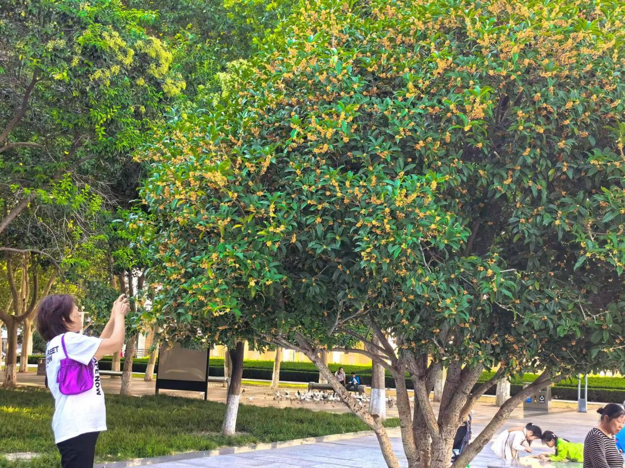金秋十月正是赏桂的好时节,趁着晴好秋日,快来文化广场赴一场桂香之约吧!看丹桂金桂竞相吐艳,任清甜香气萦绕鼻尖,让大家在这份独属于秋日的馥郁里,感受石家庄的浪漫秋韵。(通讯员 陈帅)