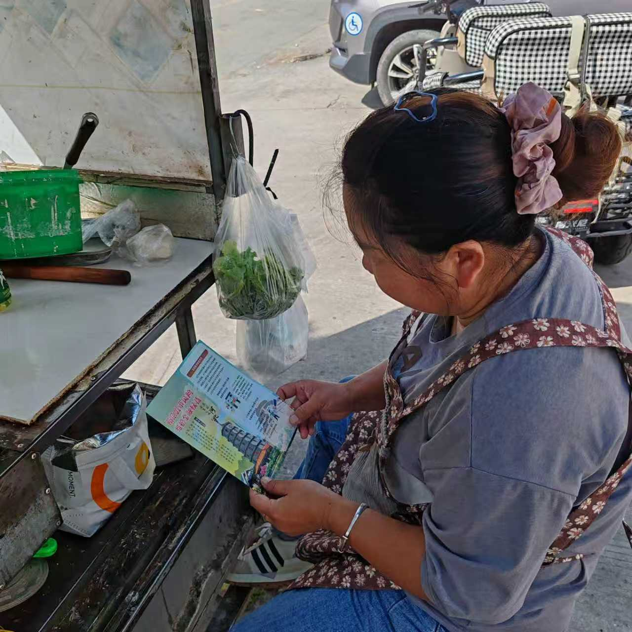 一位经营小吃摊的摊主正专注地翻阅反假币宣传折页。桑婷 供图