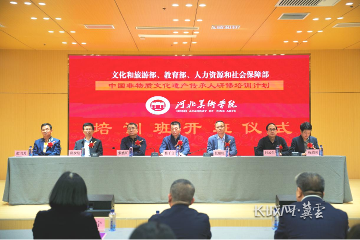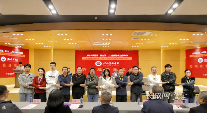 10月13日上午,由文化和旅游部、教育部、人力资源和社会保障部共同实施的“中国非物质文化遗产传承人研修培训计划”第二十一期陶瓷烧制技艺与第二十二期雕刻技艺数字化创新人才研培班开班仪式,在河北美术学院罗马城堡隆重举行。来自全国十余省市的60名非遗传承人及相关从业人员齐聚河北新乐,共同开启为期一个月的学习研修。