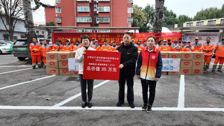 金秋送暖,爱心传递。在2025年“环卫工人节”即将到来之际,10月20日上午,由河北省乐仁慈善基金会、石家庄市志愿服务联合会主办,石家庄亿思特智能科技有限公司(IKOO GLASS)捐赠支持的石家庄市“关爱环卫工、情暖环卫节”公益活动在新华区卫生队温暖举行。