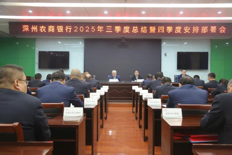 10月21日下午,深州农商银行召开2025年三季度总结暨四季度安排部署会,全面总结前三季度工作成效,安排部署四季度重点工作。领导班子成员、各部室经理、支行行长及分理处主任共计57人参会。