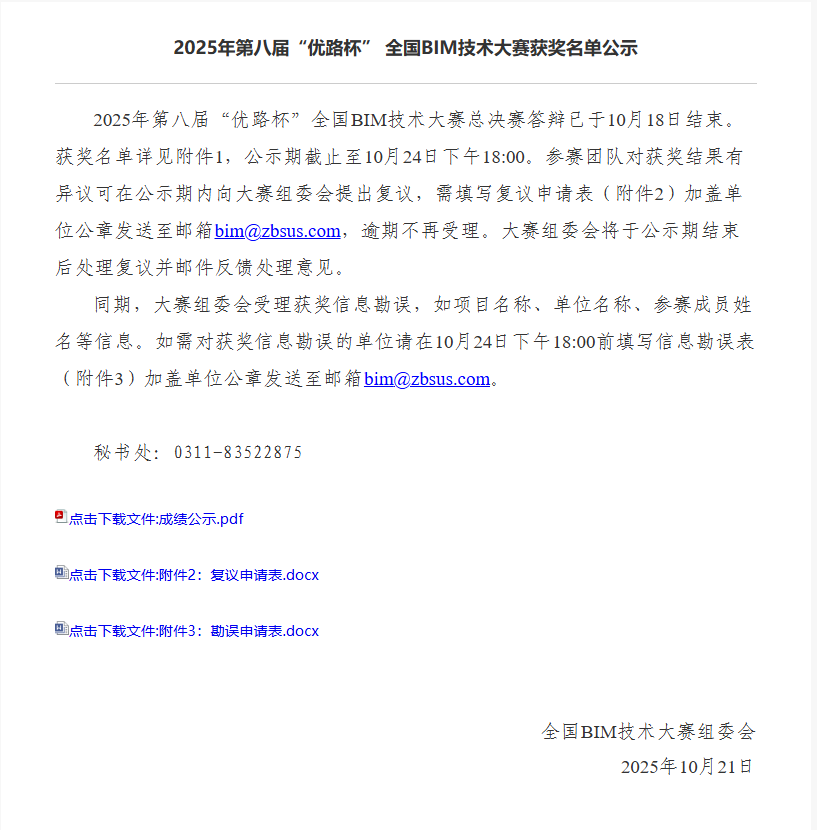 10月21日,由工业和信息化部人才交流中心举办的2025第八届“优路杯”全国BIM技术大赛结果揭晓,河北交投建筑科技有限公司(以下简称“建筑公司”)申报的一项BIM参赛项目荣获“工业与民用建筑施工组”铜奖。