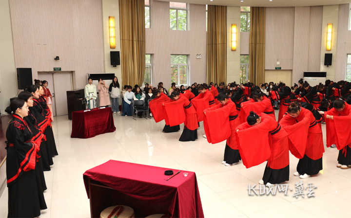 活动以“赓续文脉、知行致远”为主题,从“入文门”的正衣冠、净手沃盥,到“秉古礼”时的天揖敬师、呈递拜帖;从“立宏声”中的齐诵《大学》、挥毫明志,到“承师训”时的谆谆教诲、开蒙启慧;直至“启新程”的鼓声为号,师长引路前行……整场典礼如一幅徐徐展开的画卷,庄重而不失温情,传统却意蕴深远,将千年礼乐文明浸润于每个瞬间,为学子们开启了浸润着中华文脉的求学新篇。(李亭)