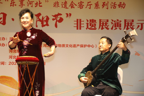 当天上午,“福瑞重阳・民俗雅韵”曲艺专场展演开演。鼓书唱盛世,曲苑敬重阳,木板大鼓、西河大鼓、乐亭大鼓、梨花大鼓、河南坠子等5个曲艺类国家级非遗代表性项目轮番呈现,传承人登台献艺,尽显燕赵文化风采。木板大鼓浑厚粗犷,西河大鼓简洁苍劲,乐亭大鼓“九腔十八调”婉转独特,梨花大鼓伴奏三弦显地域特色,河南坠子以乡音叙情韵味独特。曲目以“尊老敬老”为主题,以艺术形式弘扬传统美德、传递重阳温情。