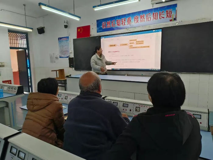 课程展示后,教研组围绕问题链教学法的设计与实施展开深入研讨。王密老师结合示范课经验,提出问题链设计需遵循三大原则:问题设置要基于真实情境、符合学生认知规律、指向核心素养目标,并强调需以教材内容为根基、学情分析为依据、教学重点为导向,确保问题链的科学性与适用性。路艳红老师指出,有效的问题链应形成“基础巩固—能力提升—拓展应用”的递进关系,通过环环相扣的问题设计帮助学生逐步深化理解。吴桐老师建议在问题链中融入更多开放性问题,鼓励学生自主探究与小组合作,通过“学生讲解—同伴互评”的方式提升课堂参与度。牛亚峰老师则分享了问题顺序优化的实践经验,通过调整问题呈现逻辑,增强知识间的关联性,帮助学生构建完整的知识网络。