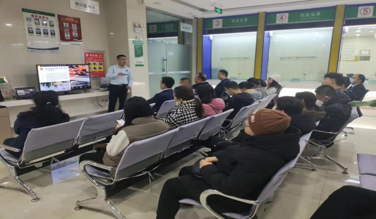 活动前期,该支行提前部署筹备,通过网点电视滚动播放消防宣传标语、在营业大厅设置消防知识展示区、摆放宣传海报及折页等形式进行预热,让前来办理业务的客户直观了解消防宣传活动主题与核心内容。同时,利用支行客户微信群推送家庭用火用电安全常识、初期火灾扑救技巧等内容,提前点燃大家的学习热情。