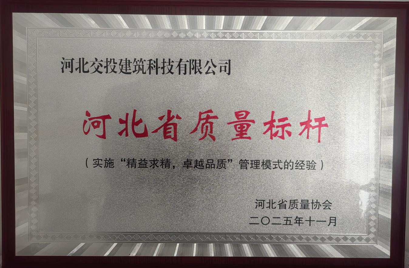 11月14日,太行城乡建设集团所属河北交投建筑科技有限公司(以下简称“建筑公司”)成功入选2025年“河北省质量标杆典型经验”名单,荣获“河北省质量标杆”称号。