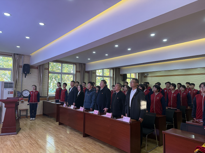 为了培养学生的社会主义核心价值观,引导学生树立正确的世界观、人生观和价值观,石家庄市第十六中学于2025年11月20日下午在学校四楼多功能室举行了入团仪式。参加此次入团仪式的领导有:我校党支部书记兼校长张诚,副书记张国建,德育副校长武利华、后勤副校长徐晓明,团委书记周香香,团委副书记吴鹏圆,此外还有各年级团员代表共同参与。