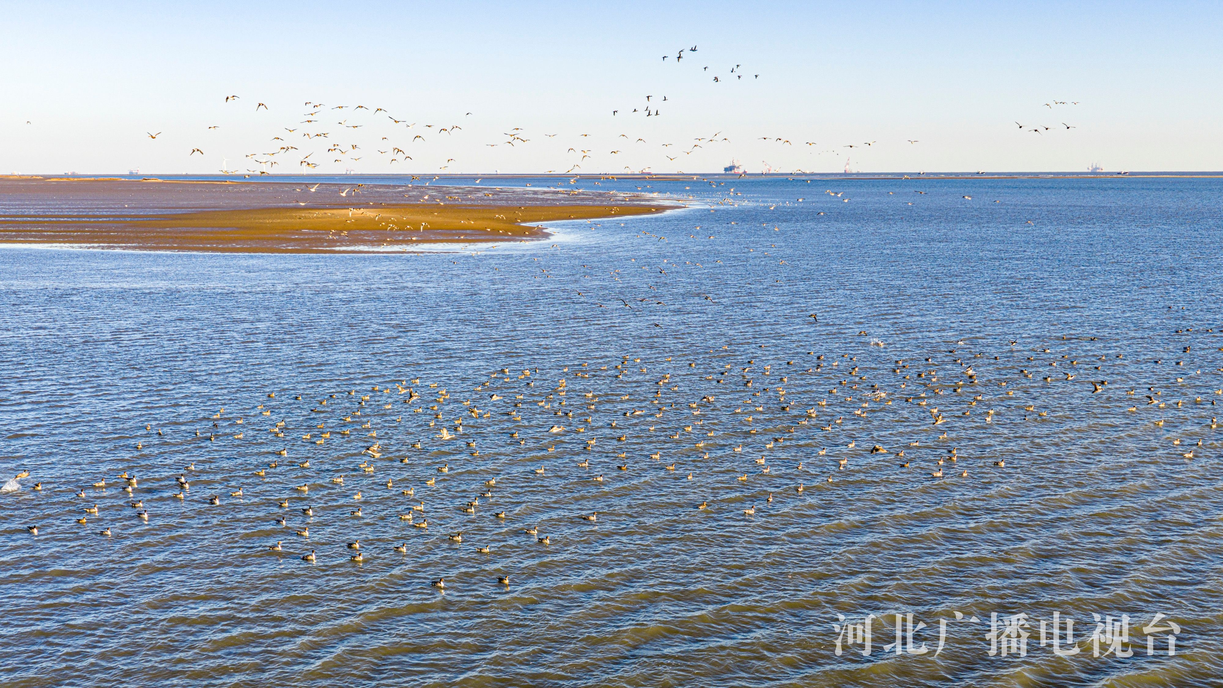 初冬时节,大批越冬候鸟在唐山市国际旅游岛菩提岛附近休息、觅食,构成了一幅幅灵动的自然画卷。(拍客 李秀清)