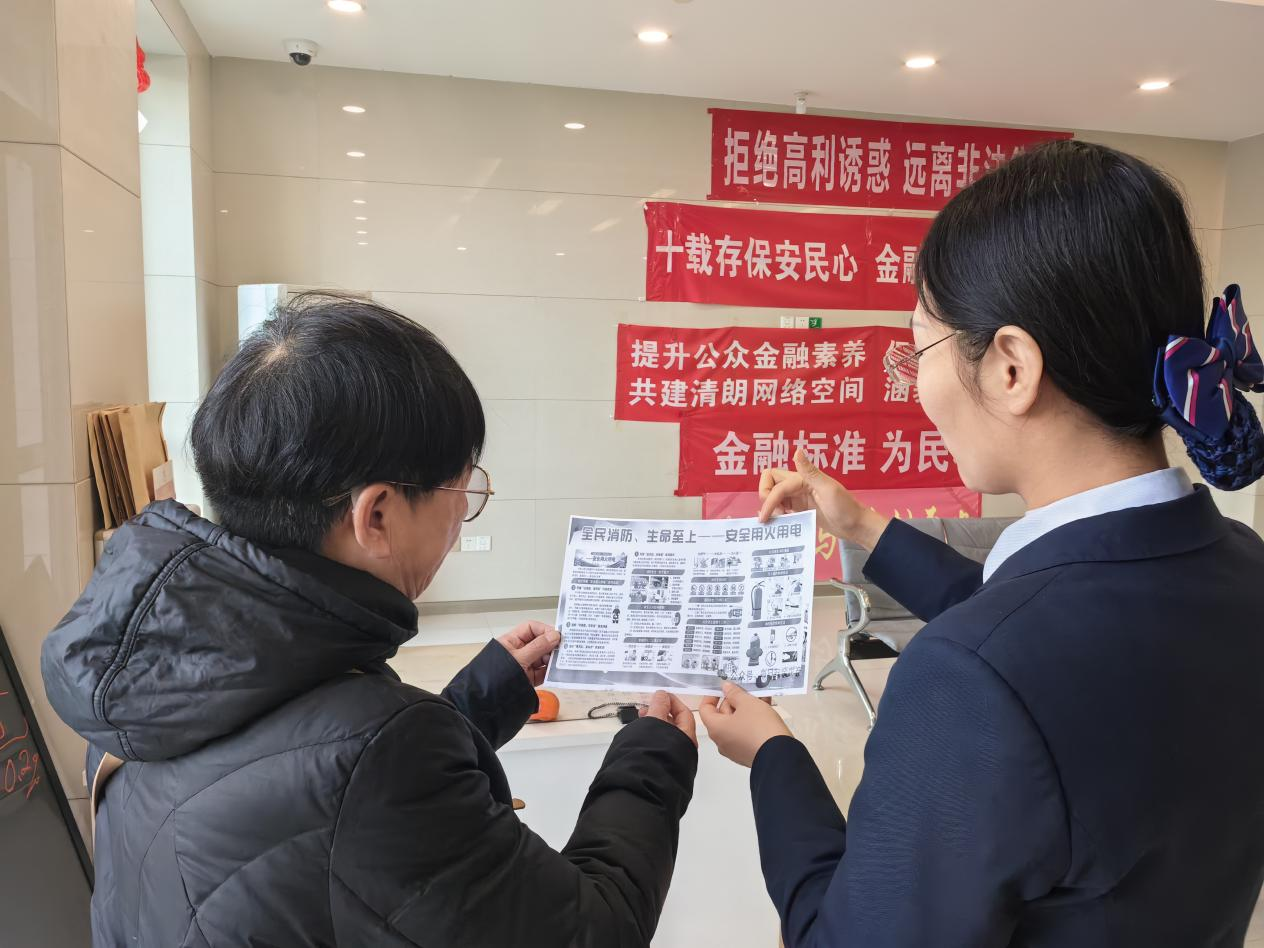 同时,该支行以营业大厅为核心宣传阵地,面向公众普及消防知识。厅内电视循环播放消防科普动画与火灾警示视频,门口设置消防安全咨询台,工作人员主动为往来客户及附近居民发放宣传折页,耐心解答用火用电安全、初期火灾处置等常见问题,传递“消防安全、人人有责”的理念,有效提升公众安全防护意识和应急处置能力。