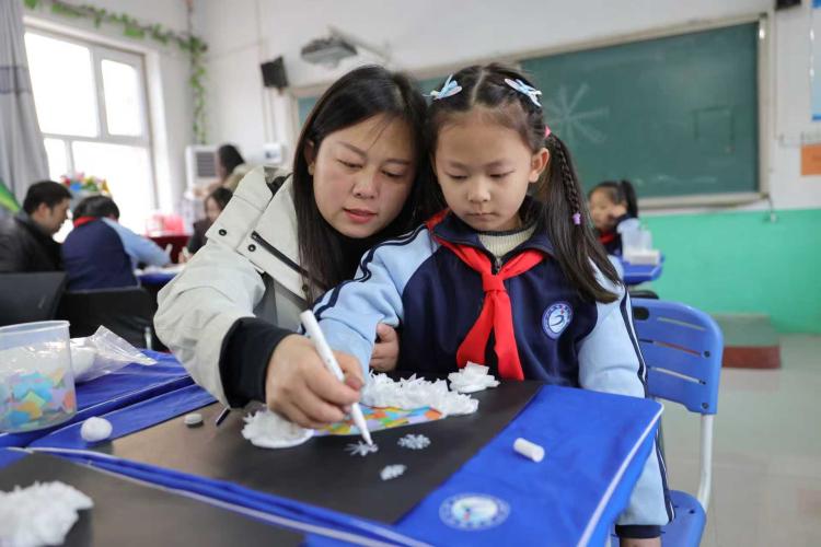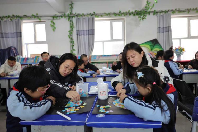 活动现场,家长与孩子们围桌协作,用彩笔勾勒轮廓、用彩纸创意填充,每一步都饱含深情。活动中家长们放下忙碌,全身心投入与孩子的互动中。有的耐心指导孩子调色构图,有的与孩子共同构思画面细节,不时交流想法、分享欢笑。二年级学生杜子欣与妈妈合作完成《创意彩虹帽》,她兴奋地说:“和妈妈一起画画制作特别开心,不仅作出了好看的帽子,更感受到了妈妈的陪伴。”家长么女士表示,这样的活动让亲子关系更加亲密,也让自己更深入地了解了孩子的内心世界,是家庭教育的生动实践。