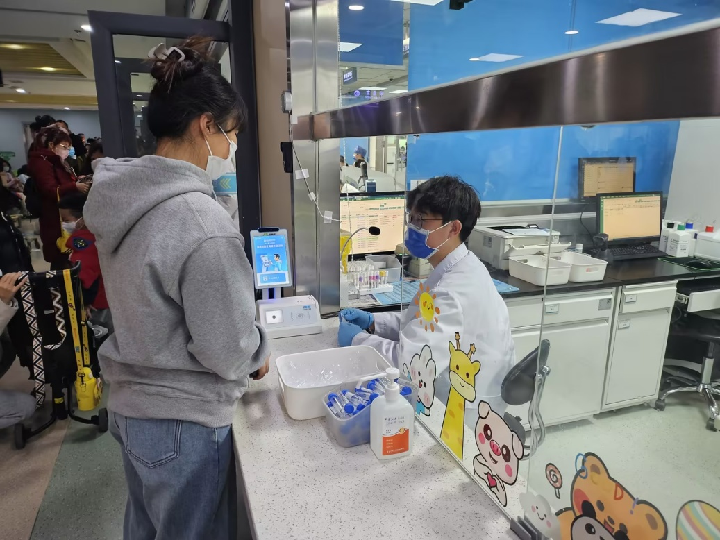 医学检验科开设24小时急诊采样检测服务,保障夜间诊疗服务质量不打折;开通居家快速检测通道,耐心解答家属预约及检测相关咨询,切实破解“等报告、跑多次、问不清”等就医痛点。为消解孩子们对采血的恐惧,科室在采血区精心布置童趣“动漫主题墙”,让冰冷的诊疗空间充满温馨趣味;深耕技术精进,力求采血“一针见血”,最大程度减少孩子痛苦;联动第三方平台推出“居家快速检测”服务,让家长足不出户就能获取精准检验报告,真正实现健康服务“零距离”。