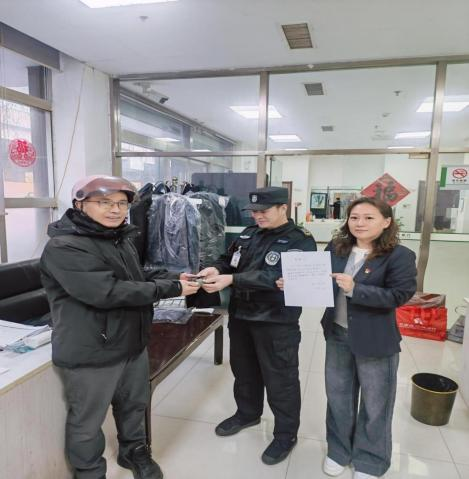 近日,曹静与陶忠有骑车上班途中,行至中华大街与赵佗路交叉口时,曹静在人行道上发现一部遗失的崭新华为手机。二人迅速上前捡起,尝试查看失主信息时,发现手机设有密码,无法直接获取联系方式。“失主这会儿肯定急坏了!”陶忠有看着手机,语气里满是焦急。为尽快联系失主,二人到达单位后,尽快查看手机品牌、型号等关键信息,通过支行客户联络群、周边社区业主群发布失物招领,还同步联系社区网格员帮忙寻找失主;陶忠有则对照锁屏紧急联系人提示,多次拨打电话核实身份。当天中午 11 时许,二人成功联系上焦急万分的高先生。