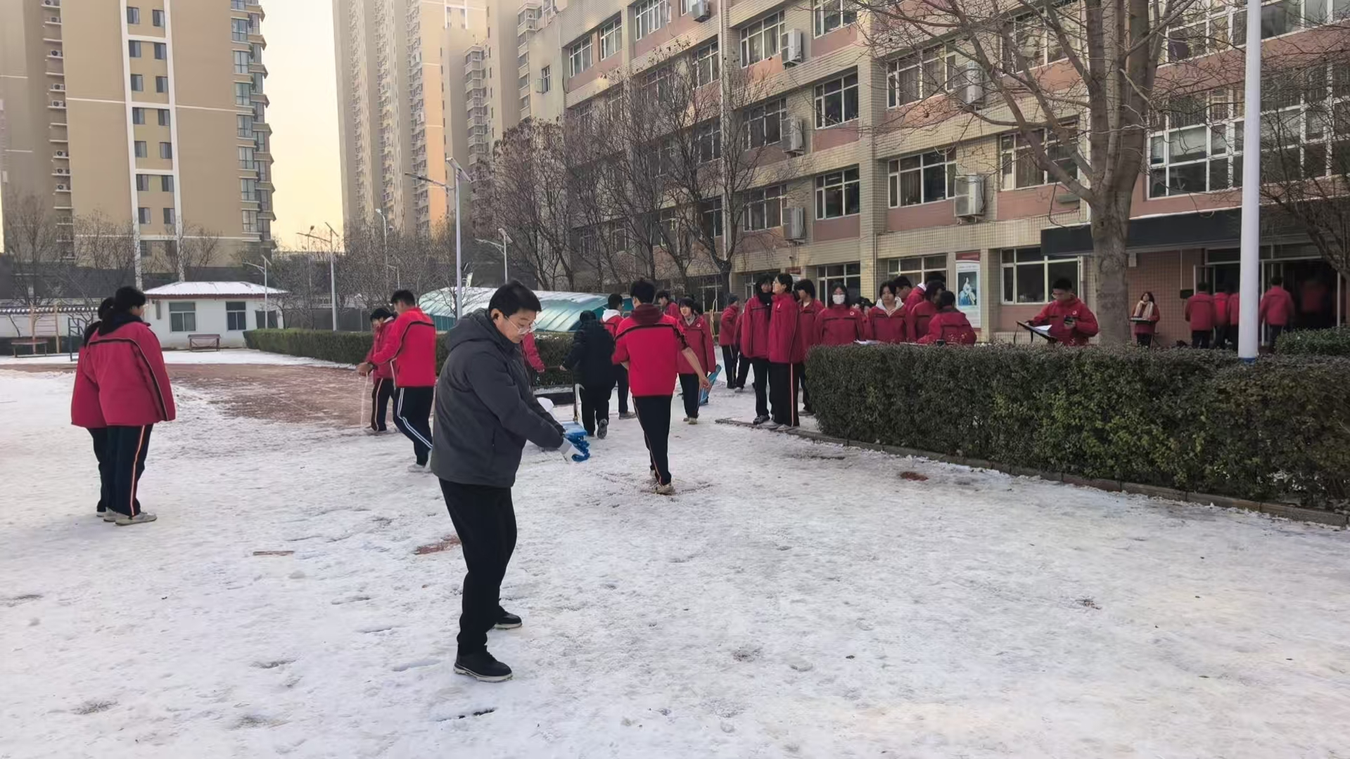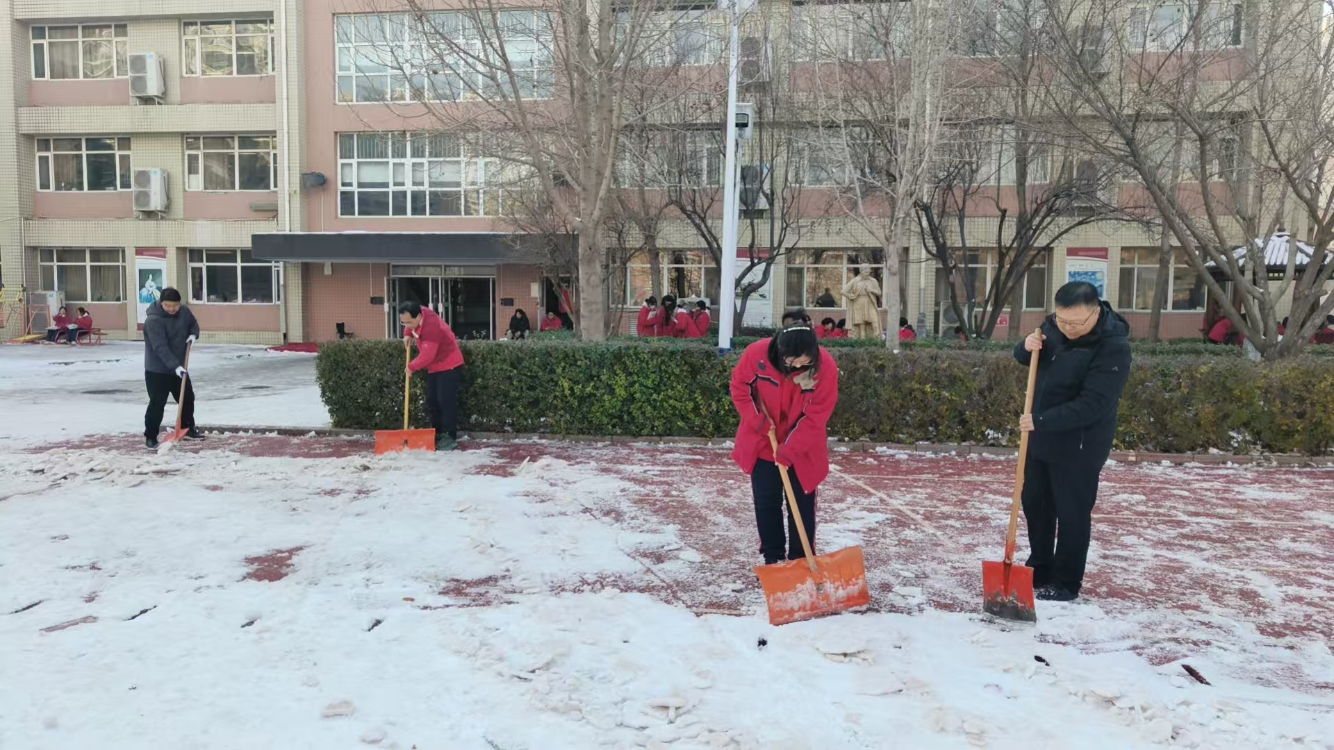 除雪现场,老师们分工明确、配合默契,大家手持清雪铲子,合理使用环保融雪剂,对校园主干道、教学楼出入口、操场等重点区域的冰雪进行集中清扫。尽管天气寒冷,但老师们不畏严寒、干劲十足,有的弯腰铲除地面薄冰,有的奋力清扫积雪,有的仔细撒布融雪剂,不放过任何一处安全隐患。