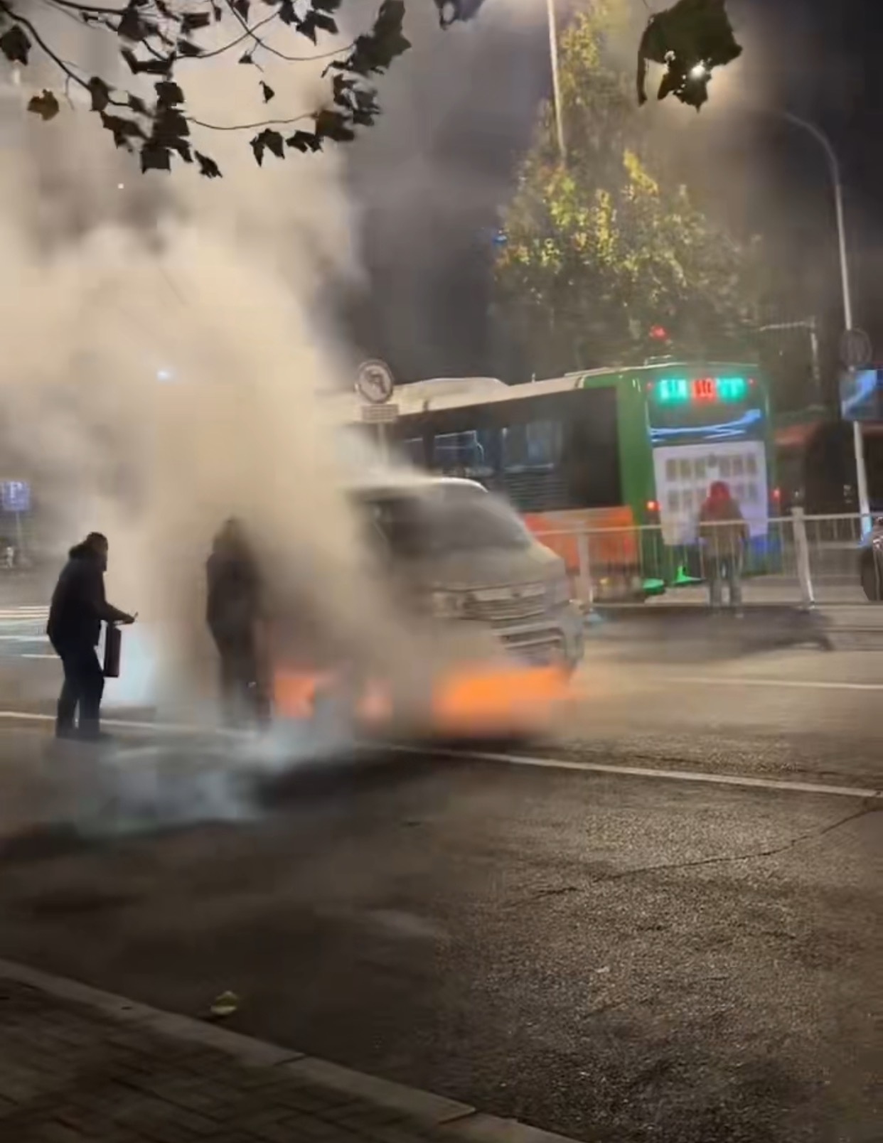 12月24日清晨6:40,石家庄建设大街车流涌动,石家庄交投集团所属公交集团110路公交车长樊丽平驾驶车辆由北向南行驶。当车辆行驶至光华路路口时,左侧机动车道突然冒起橙色火光——一辆面包车正在猛烈燃烧。情况十分危急,眼看面包车上冒出的烟越来越大,樊丽平赶紧将公交车停靠在安全的地方,对车厢内乘客留下一句“请稍等,我去灭火”,打开双闪警示灯,便如离弦之箭下车去。从发现火情到抵达起火点,全程仅用30秒。