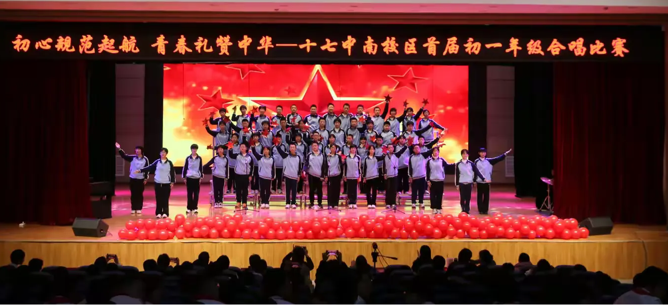 近日,石家庄市第十七中学南校区举办了“初心规范启航 青春礼赞中华”初一年级合唱比赛。活动旨在厚植学生家国情怀,强化行为规范养成,展现新时代少年风采。