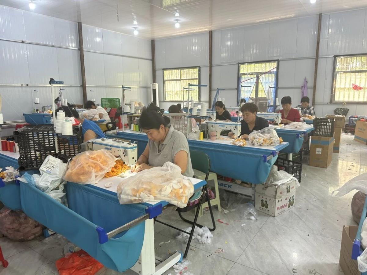 毛绒加工产业凭借丰富的劳动力资源和成熟的生产技术,逐渐发展成为支柱产业之一。镇上的毛绒加工企业引进了一批先进的缝纫设备,在保证生产效率的同时,严格把控产品质量。目前,全镇从事毛绒加工的企业有5家,其中西璋玩具加工厂、东村蓉蓉玩具厂发展规模较大,西璋玩具厂带动40余人就业,其中大部分是附近村庄的村民。同时,玩具厂在其他村也设立加工点,形成规模化生产网络,周边乡村的村民可领取材料回家加工,这一方式为周边村民创造了200余个就业机会。玩具厂均实行计件工资制,熟练工人月收入可达3000—4000元不等,为村民稳定增收提供了有力保障。