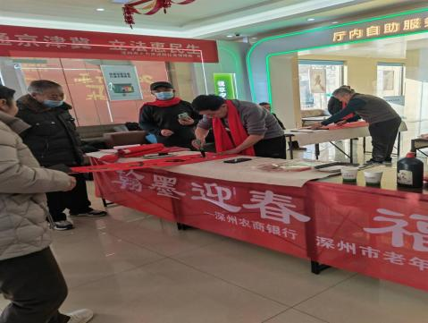 2025年12月26日上午,深州农商银行联合市老年书画研究会,在营业部开展“元旦送福 翰墨传情”活动。活动现场,书法家挥毫泼墨,吉祥春联与遒劲“福”字墨香四溢,客户办理业务之余即可免费领取这份文化新春礼。这场翰墨活动,更让人从笔墨纸砚间,读懂与银行业务相通的职业精神。