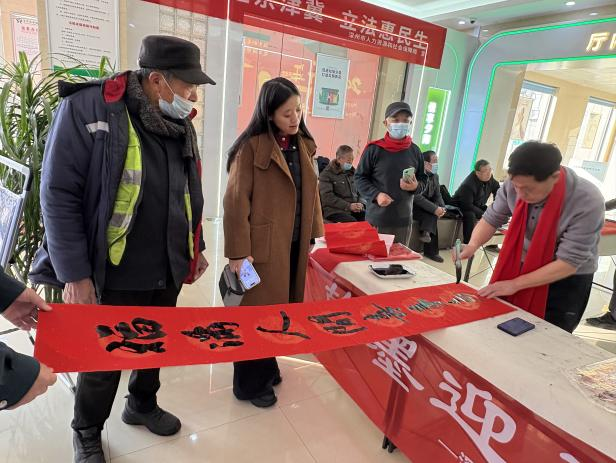 在各营业网点举办的“写春联、送祝福、传知识”活动中,墨香与年味交织,书法爱好者现场挥毫,一幅幅融入金融安全知识的春联吸引了众多村民驻足。工作人员在喜庆的氛围中主动讲解,结合对联内容解答村民关于存款保险、诈骗识别等问题,并现场演示实用的反诈技巧。村民们在领取春联的同时,也加深了对金融安全知识的理解。