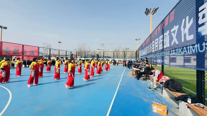 赛场上,篮球健儿奋勇拼搏,现场观众热情高涨、掌声不断。赛场周边,特色展销区热闹非凡,本地乐寿鸭、燕京啤酒等特色产品、单桥文创好物集中亮相,非遗驴肉包子香气扑鼻,香囊手工制作体验备受欢迎,成为现场一大亮点。文艺展演轮番上阵,歌声嘹亮、舞姿灵动,欢快旋律与热闹氛围相融,为赛事添彩、为展销聚气,更让现场活力值拉满。