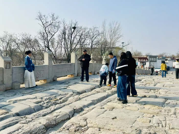 依托百年单桥底蕴,本次赛事精心打造汉服文化体验专区,游客身着汉服漫步古桥,抚摸石雕、聆听“乐善好施,无私奉献”的传承故事,在滹沱河故道畔沉浸式感受传统文化与古韵风光,实现了“观球赛、游古桥、品特色”的体验闭环。