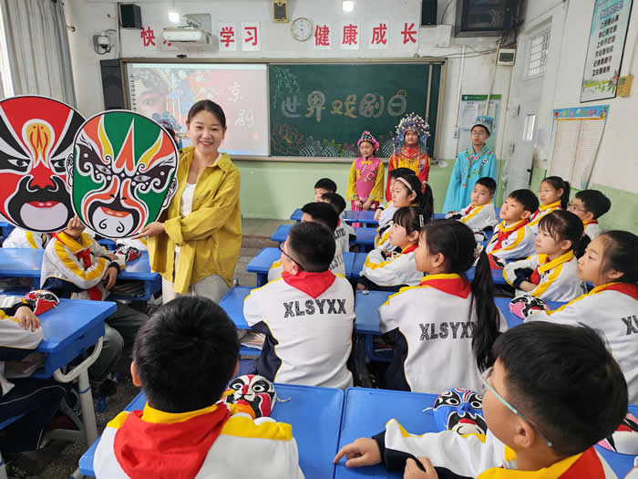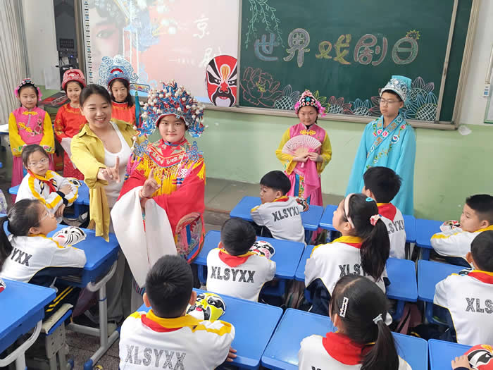 为迎接世界戏剧日,3月26日上午,新乐市实验小学开展戏剧文化进校园活动。通过教师讲解戏剧知识,欣赏戏曲名段、师生现场表演等形式,营造浓厚氛围,让孩子们感受传统文化的独特魅力。(通讯员 张淑娜)