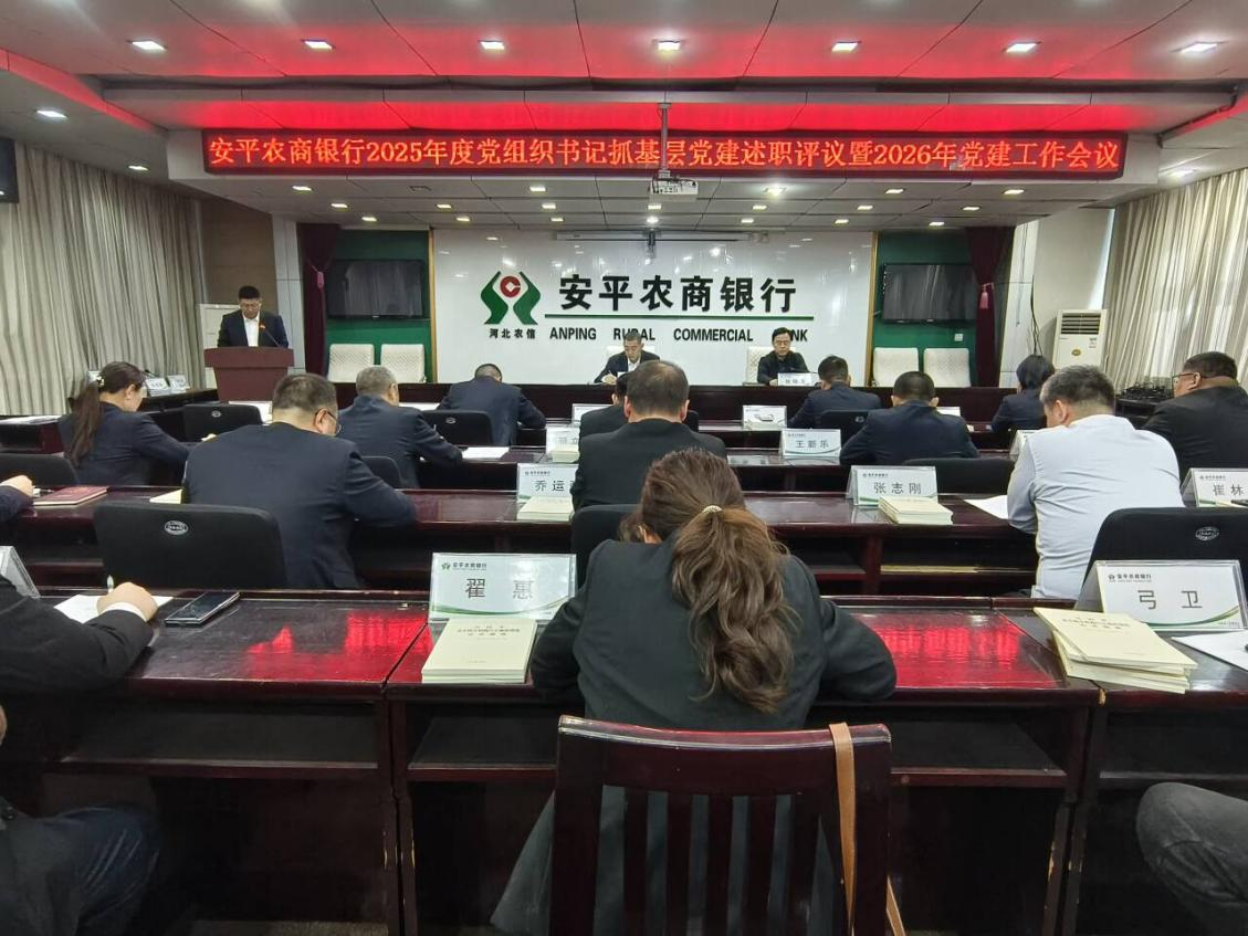 3月25日,安平农商银行党委召开2025年度基层党组织书记述职评议暨2026年度党建工作会议,党委副书记张晓龙主持会议,党委书记作重要讲话。机关第三党支部、城区联合党支部书记进行现场述职,其他基层党支部书记书面述职。扈健同志认真听取了现场述职并按照“一述一评”方式进行了点评,充分肯定了过去一年全行各党支部抓基层党建工作取得的成效,指出了存在的不足和差距,并对2026年基层党建工作作出部署。