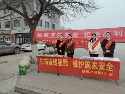 为深入贯彻落实中国人民银行河北省分行、衡水市分行相关通知要求,提升公众反洗钱风险防范意识,守护群众财产安全与金融秩序,自3月份起,景州农商银行依托“3·15”消保日、农贸集市及日常宣传等节点,集中开展以“打击洗钱犯罪,维护国家安全”为主题的反洗钱宣传月活动。