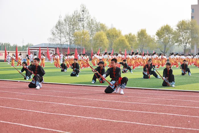 4月15日上午,新乐市教育局组织的中小学生艺术节汇演现场,实验小学654名学子组成的大型武术表演方队,以一场气势恢宏的《武...