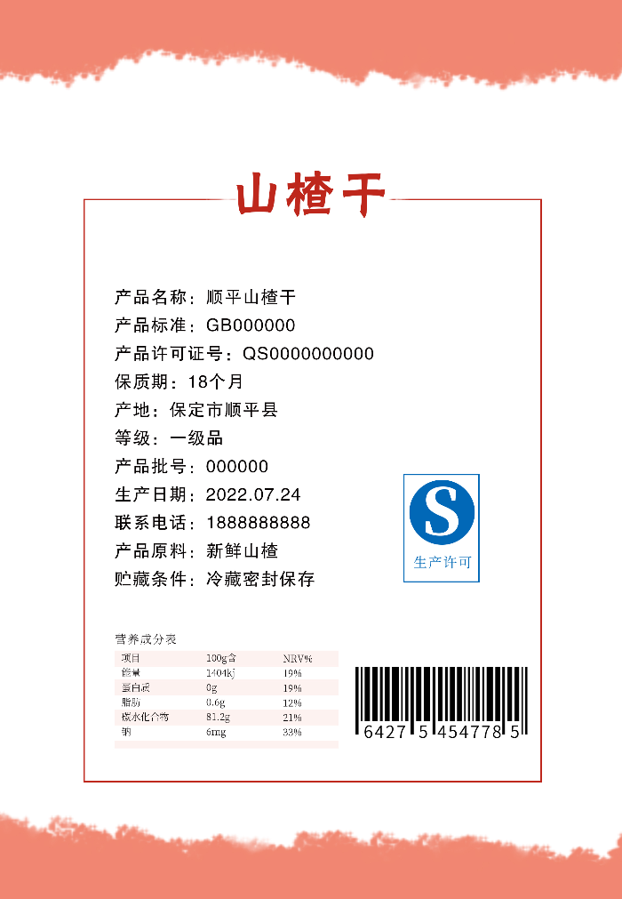 山楂干都是采用优质的大颗粒果实,类球形,直径0.8~1.4cm,经手工切片,烘干而成。表面棕色至棕红色,并有细密皱纹,顶端凹陷,有花萼残迹,基部有果梗或已脱落。