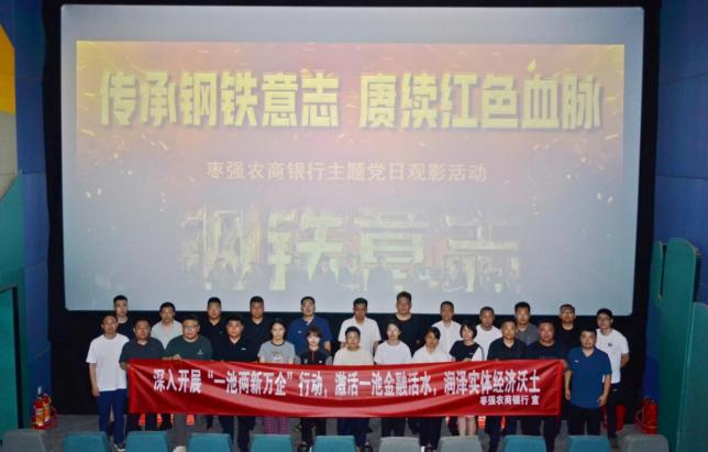 为巩固拓展主题教育学习成果,引导党员干部深入基层一线,发扬艰苦奋斗、忠诚担当、甘于奉献的精神,7月1日晚,枣强农商银行组织党员干部集中观看影片《钢铁意志》。