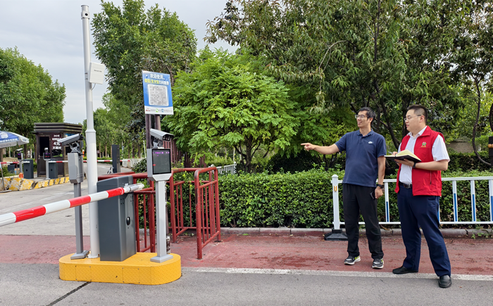 鹿泉农商银行员工调研停车场收费系统运行情况。刘思雯 供图