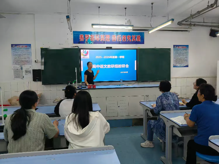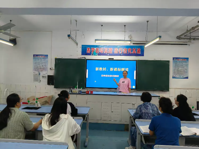 为深入理解《普通高中语文课程标准》精神,准确把握部编版高一语文新教材的编写理念与教学要求,推动课堂教学改革,提升教学质量,9月12日,我校高中语文教研组在化学实验室举办了以“新教材、新课标解读”为主题的语文教学研讨活动。全体高中语文师积极参与。