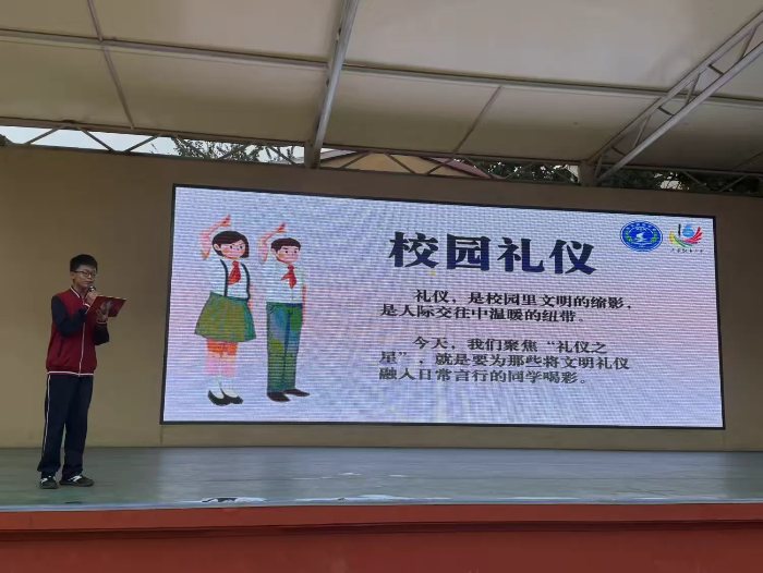 礼仪,是校园文明的缩影,是人际交往中温暖的纽带。本周升旗仪式中,聚焦“礼仪”,选出了9名“校园礼仪之星”,德育副校长武利华,教学副校长王艳虹为获奖学生颁发荣誉证书及奖章,鼓励全体学生以获奖同学为榜样,全面发展,积极进取。