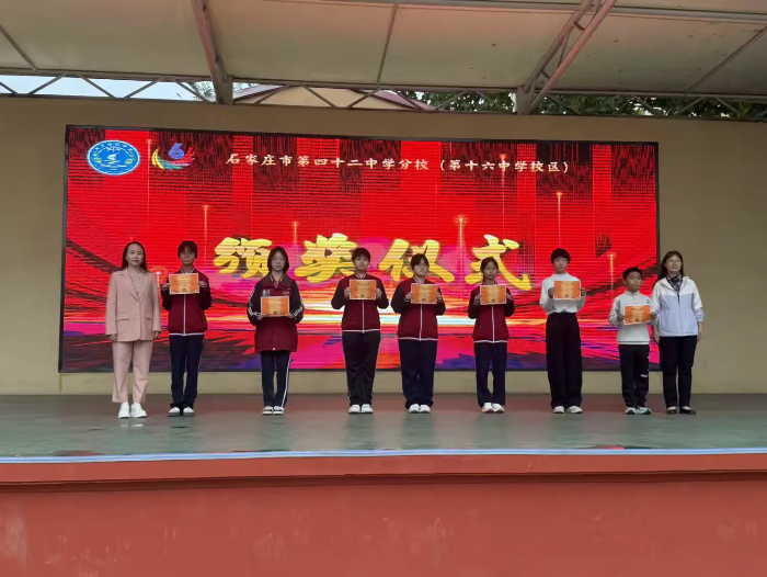 纪念抗日战争胜利80周年暨规范书写大赛如期举行,教育处主任王娟,团委书记周香香为获得一等奖的7名同学颁奖。