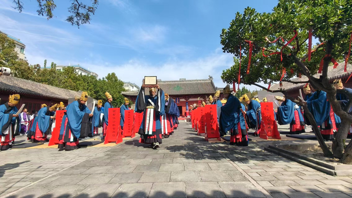 9时30分,非物质文化遗产“正定文庙释奠礼”演礼展示启幕。来自国内高校的专家学者、河北省儒学会第六期释奠礼传承学习班同仁与石家庄弘文中学、正定中学师生共演,依传统仪轨完成仪式,尽显礼乐底蕴,演礼同步通过“全球云祭孔”直播传至全球。