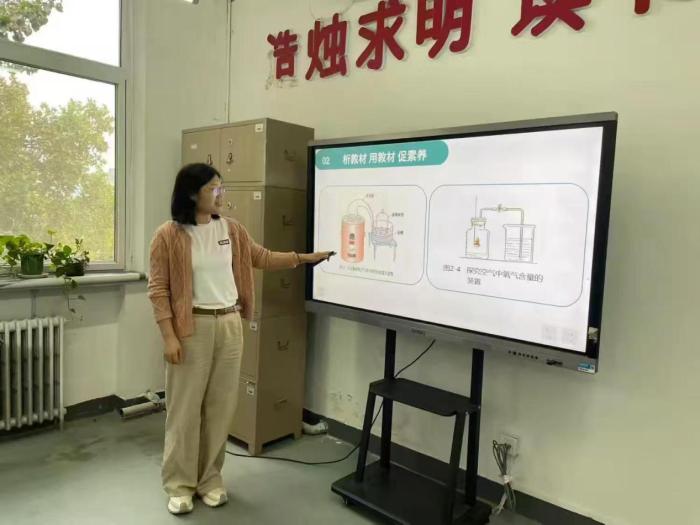 化学组康菲菲老师从注重学科实验、文化素养两个方面对新教材进行了解读,以“空气的组成”为例,从对科学史实的解读,到与演示实验对比,再到数字科学技术,不仅体现学科实验特色,同时展现了中国科技的发展,实现了知识传授到素养培育的转型。