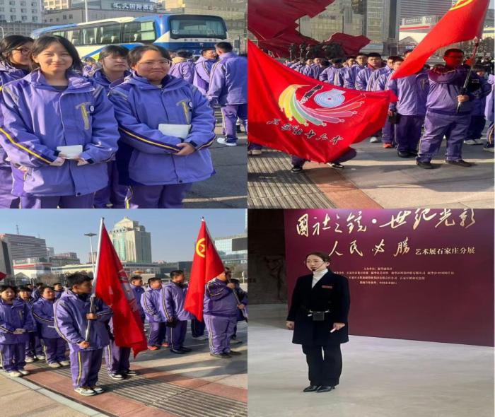 2025年12月16日下午,为厚植家国情怀,传承红色基因,石家庄市第十六中学教育处紧扣立德树人根本任务,组织高一年级部分学生走进石家庄解放纪念馆,参观“国社之镜·世纪光影之人民必胜”艺术展。学校教育副校长武利华、教学副校长王艳虹、教育处主任王娟、教育处副主任吴鹏圆及年级主任班丽娟全程陪同,与学子们共同开启了这场以红色资源为依托的行走的思政课,让大中小学思想政治教育一体化建设在实践中落地,也为办好人民满意的教育注入鲜活的红色动能。