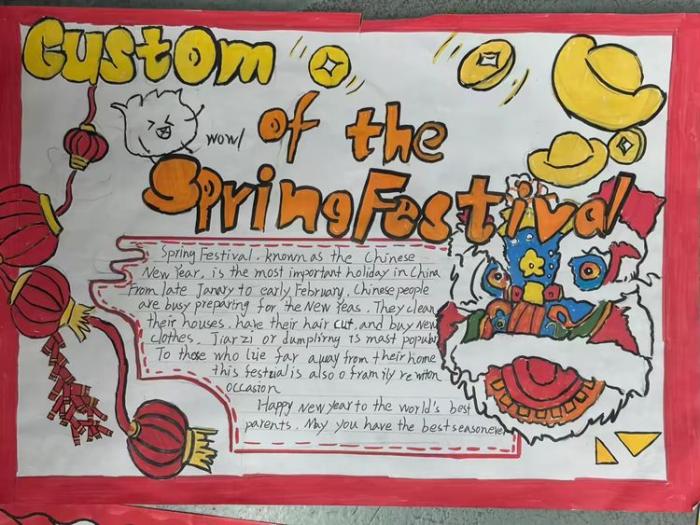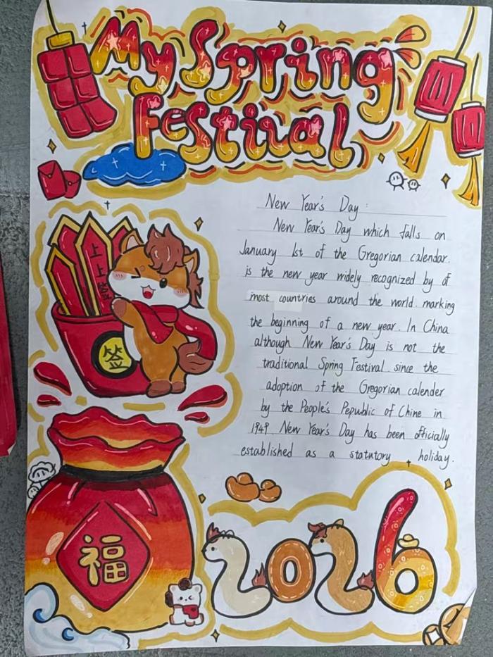 此次“迎新年手抄报”英语学科活动,打破了传统英语课堂的局限,为学生搭建了一个展示自我的平台。不仅锻炼了学生的英文书写、资料整合与动手实践能力,更让学生在创作中深入了解了中外新年文化的差异与共性,增强了文化认同感与跨文化交际意识。(王一泽 闫叶函 王艳虹)