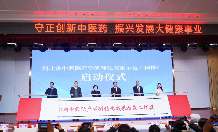 河北中医药大学中医学院院长郭秋红,河北省中医院副院长张微,药都严选健康产业集团董事长李佳、药都严选大健康产业研究院院长葛少钦,河北医科大学第三医院副院长王鹏程,承德医学院中药研究所副所长刘喜纲,河北化工医药职业技术学院药学与健康管理系主任于文国,共同启动河北省中医药产教融合发展学会,通过优化资源配置,促进跨区域合作,推动中医药优质资源更好地造福群众健康。