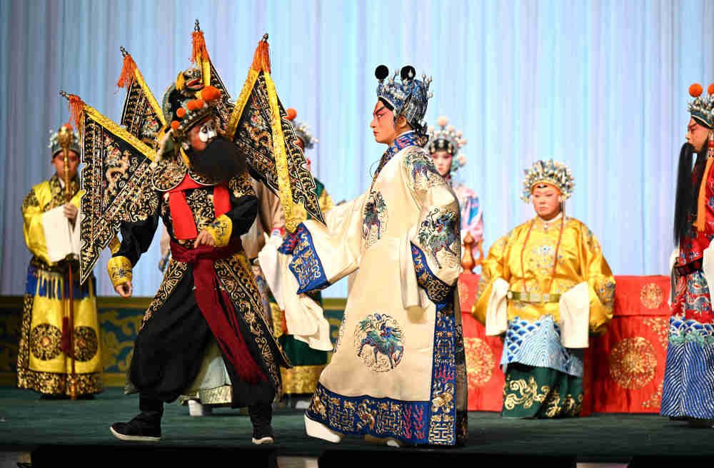 ↑ 1月25日晚,中国戏曲学院演员在河北省石家庄市人民会堂表演京剧《龙凤呈祥》。新华社发(陈其保 摄)