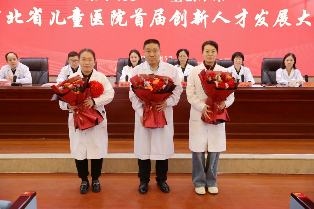 会上,院领导依次宣读了“童翼英才”培养人选、2025年度新聘研究生导师、2025年度专家荣誉称号获得者及新引进高层次人才名单。随后,现场举行了隆重的颁发证书与献花仪式,向获聘、获誉及新加入的各位专家人才表示热烈祝贺与诚挚欢迎。“童翼英才”培养人选代表曹利静、齐灿、王凌燕先后发言,分享了扎根儿科、深耕专业的成长感悟,展现了青年人才朝气蓬勃、勇攀高峰的决心。“童翼英才”导师代表孙素真表达了甘为人梯、悉心育人的责任与担当。