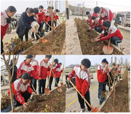 除了栽种山楂树苗,大家还一同在校园绿化带种植了月季花,期待着繁花绽放时,校园能被缤纷色彩装点,让绿意与花香相伴。挥锹铲土间,是对自然的敬畏;躬身栽种时,是对责任的践行,师生们在劳动中体会协作的快乐,感受守护绿色的意义。