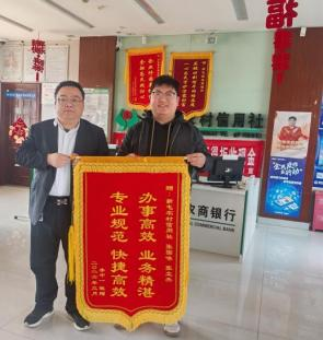 近日,枣强农商银行新屯支行上演了温馨一幕,某商店经营者李先生将一面印有“办事高效 业务精湛 专业规范 快捷高效”的锦旗送到工作人员手中,对该行高效快捷的开户服务和热情专业的服务态度表示衷心感谢。